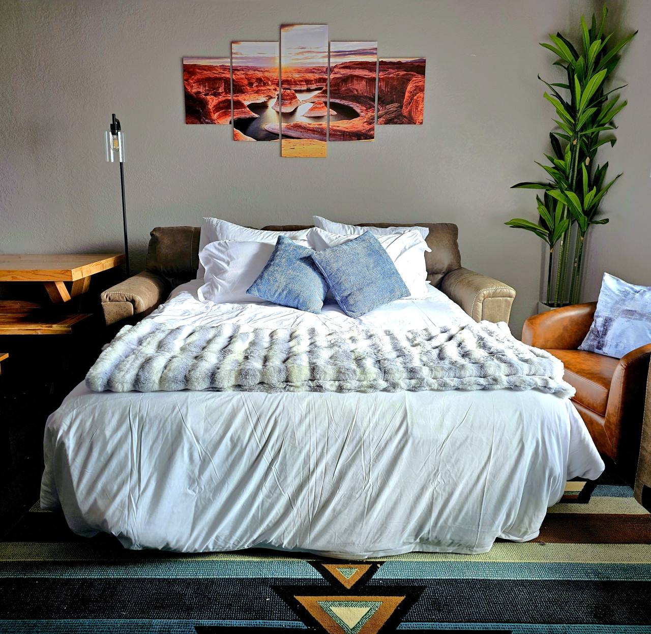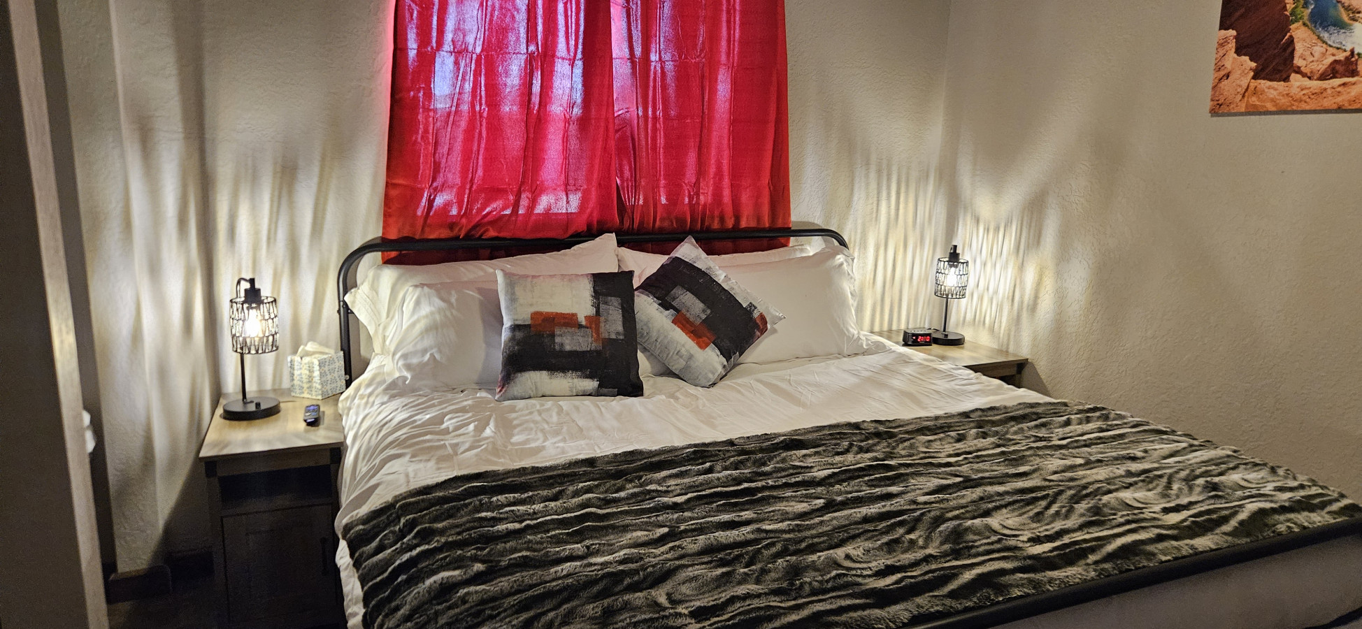 / nightNewly Remodeled 3 Bed, 1 Bath Condo in downtown Page, AZ equipped to accommodate up to 11 people. • King Beds • Free Breakfast Self-Serve (Pancakes, Syrup, Coffee, Tea, Hot Chocolate) • Boat Parking • 65” TV in Family Room • 65” TV in Bedroom 1 • 65” TV in Bedroom 2 • Large BBQ Grill • Fire Pit • Desk/Dedicated Workspace • Fully Stocked Kitchen • Washer/Dryer (Private in unit) • Minky Couture Luxury Faux Fur Blankets • Bunk Beds in Bedroom 3 • Sofa Bed • 1 block from all the restaurants and shops in downtown Page • AC/Heating We designed this place with large Families/Groups in mind. Whether you are spending the day at Lake Powell, Enjoying the Sunset at Horseshoe Bend, Off-Roading up to Lee's Ferry Overlook, Paddling or Hiking Antelope Canyon, Shopping in Downtown Page, or just walking the Dam Bridge, the location doesn’t get any more convenient than this! We have outfitted this condo for convenience and comfort. You will have everything you need to cook at home base or just relax when you get back from your adventure.
