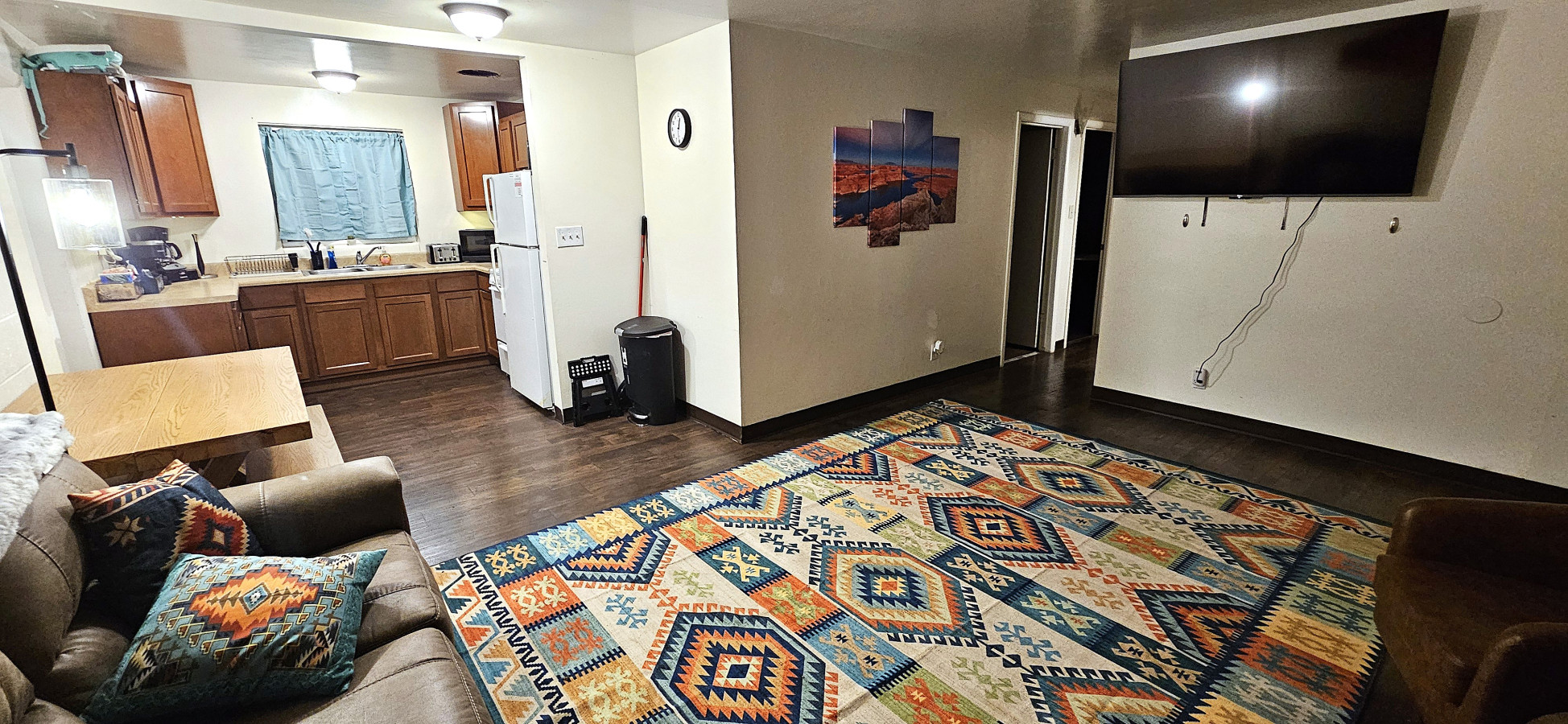 / nightNewly Remodeled 3 Bed, 1 Bath Condo in downtown Page, AZ equipped to accommodate up to 11 people. • King Beds • Free Breakfast Self-Serve (Pancakes, Syrup, Coffee, Tea, Hot Chocolate) • Boat Parking • 65” TV in Family Room • 65” TV in Bedroom 1 • 65” TV in Bedroom 2 • Large BBQ Grill • Fire Pit • Desk/Dedicated Workspace • Fully Stocked Kitchen • Washer/Dryer (Private in unit) • Minky Couture Luxury Faux Fur Blankets • Bunk Beds in Bedroom 3 • Sofa Bed • 1 block from all the restaurants and shops in downtown Page • AC/Heating We designed this place with large Families/Groups in mind. Whether you are spending the day at Lake Powell, Enjoying the Sunset at Horseshoe Bend, Off-Roading up to Lee's Ferry Overlook, Paddling or Hiking Antelope Canyon, Shopping in Downtown Page, or just walking the Dam Bridge, the location doesn’t get any more convenient than this! We have outfitted this condo for convenience and comfort. You will have everything you need to cook at home base or just relax when you get back from your adventure.