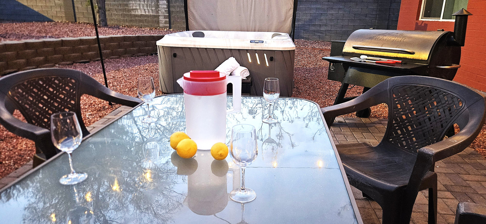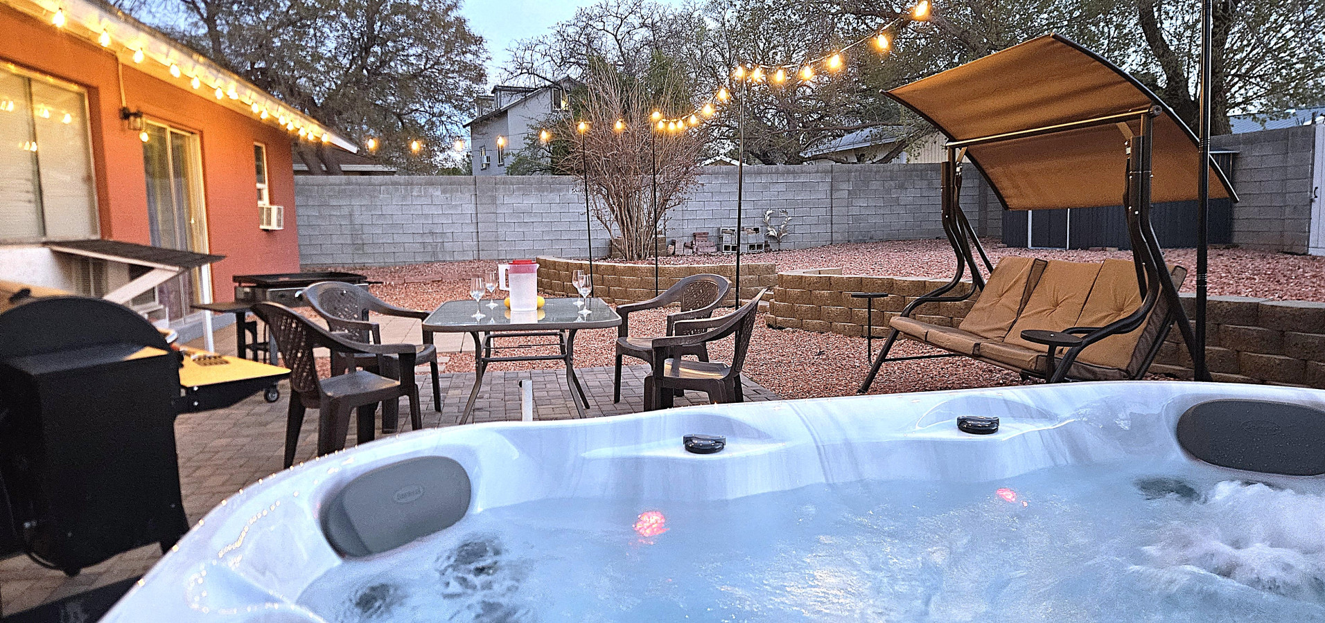 January 2026 5.00Great location for the tours. Only 3 mins away and a grocery store nearby. Good.for big families. Enjoyed the hot tub.