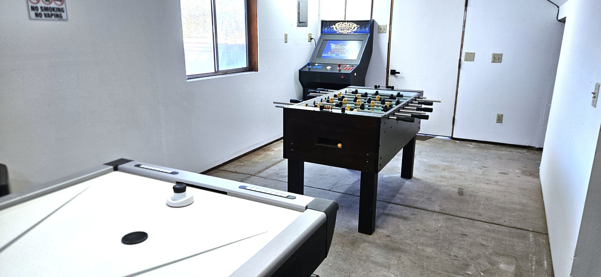 / night4 Bedroom 2ba Upper Level of a Duplex House Big enough to accommodate 10 people comfortably. • Sleeps 10 • Boat Parking for 1 or 2 • Game Room (Air Hockey, Foosball, Multigame-Retro Arcade) (Only available to this unit) • 2 Paddleboards (Life Jackets and tie downs included) • King Size Beds • BBQ Grill • Fire Pit • Fully Stocked Kitchen • FREE Breakfast-Self Serve (Pancake Mix, Syrup, Breakfast Beverage Mixes) • Washer/Dryer Room (Shared with Lower Level Unit but there are 2 sets of machines) Well Equipped Home. Spend the day on the water then come home relax and play some games, have family night in the game room and family room before retiring to the Master suite with the private bathroom and King size bed. The kids room has 2 King beds and can sleep 4 comfortably. Time to make some memories! Pets: Pets are not allowed. Note: The house has been separated into two completely different units with a locked door between them that is locked from both sides (upstairs and basement) so neither guest can enter the other unit. There may be times when you will be sharing the house with other guests downstairs. Each room in the house as well as the Family Room and Kitchen areas are all controlled by individual air conditioners so you will have complete control over temperature of each room. There is a listing for the entire house if you would prefer that. The lower level has 2 bedrooms and a bathroom with a large Family Room.